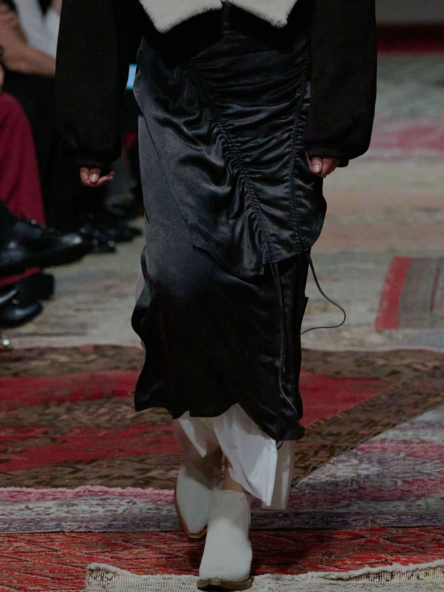 • One-shoulder satin top with asymmetrical gathering tunnels